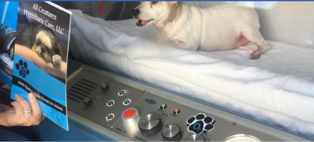 The leading pioneers in HBOT implementation with dog’s is All creatures hyperbaric care llc, in Texas. They put together the HBOT program with keto pet sanctuary and were the only people doing what they were doing treating dogs with cancer with HBOT and Ketogenic diets.