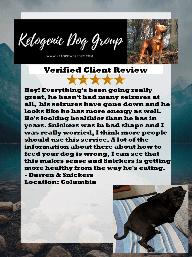 A very detailed information form for your dog will be filled out so we can not only get all of the basic information for your dog, but also some information that allows us to get the whole picture of your dogs living environment and things being used in your dogs diet that may hinder the ketogenic diet’s effectiveness .